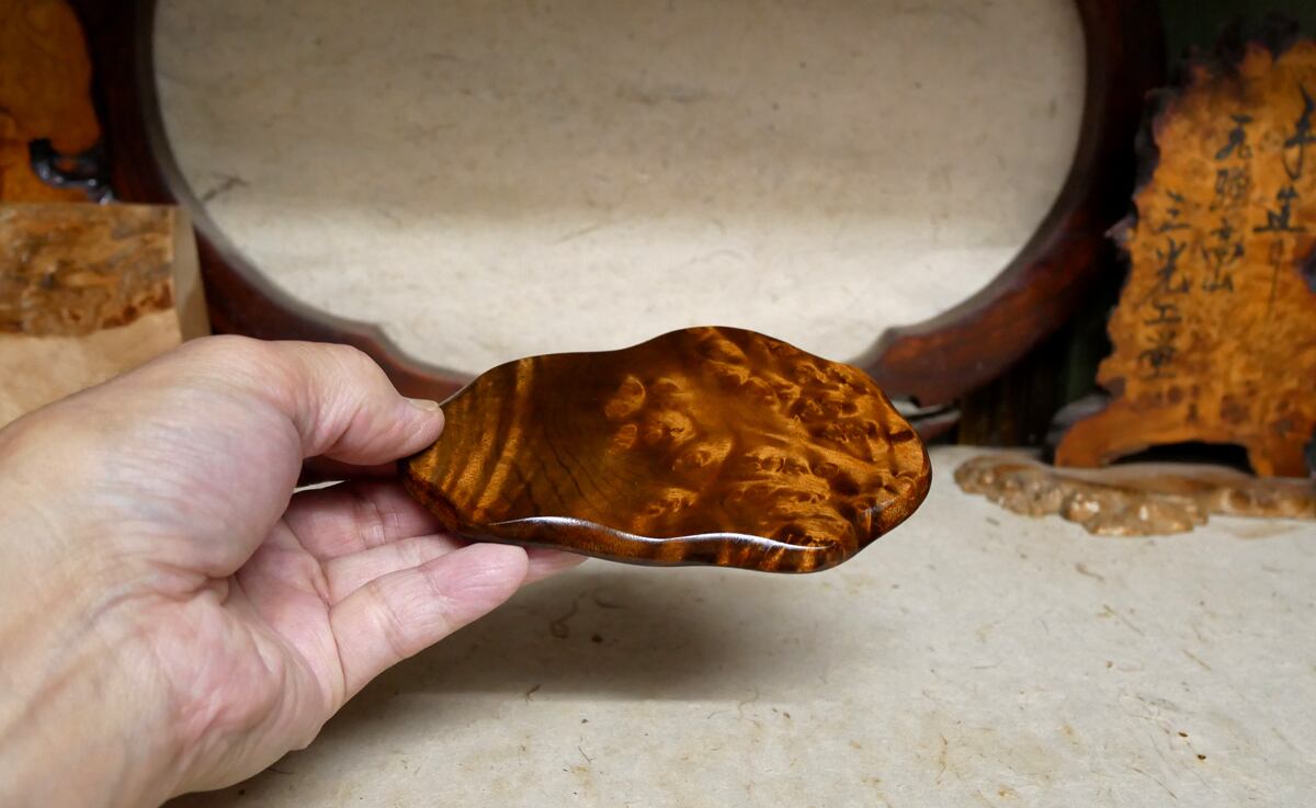 【飛騨の杢工房 謹製】マーブルウッド天然杢 小花台 (p403)