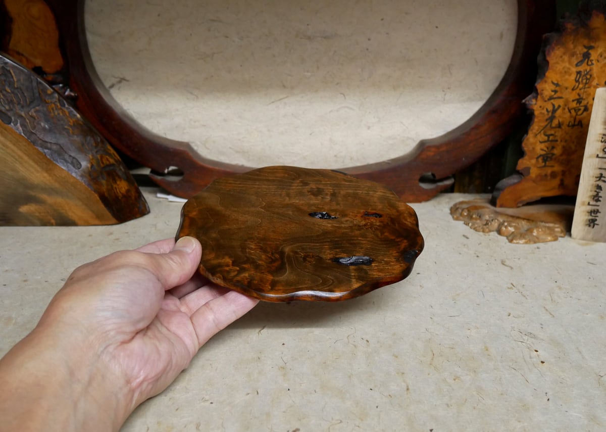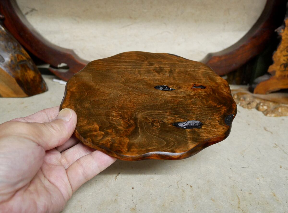 【飛騨の杢工房 謹製】ナツメ自然木・こぶ 丸い敷板 (p408)