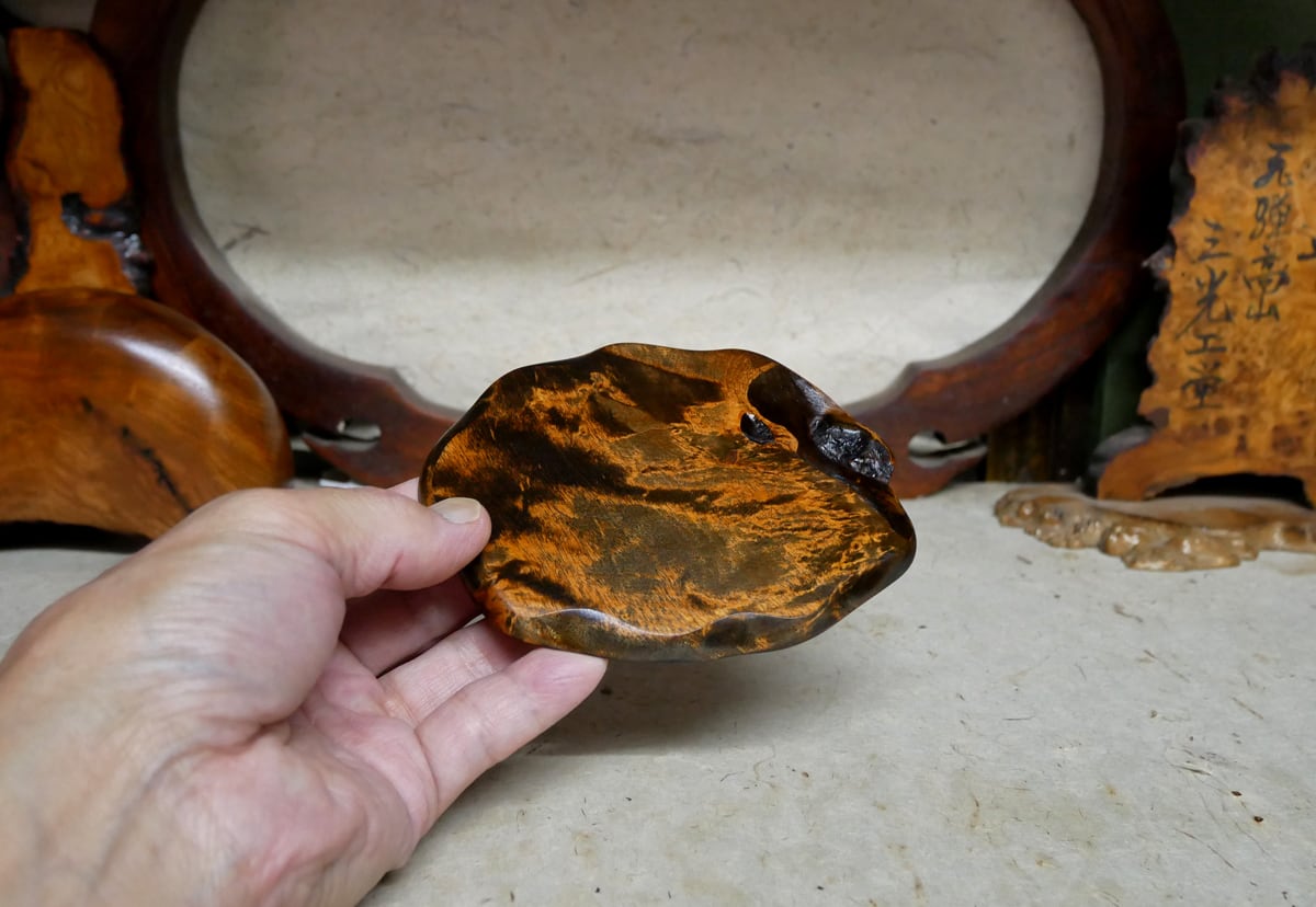 おもしろい自然木・天然コブ杢の敷板でございます。