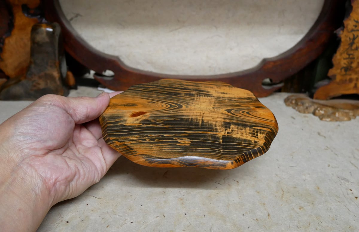 【飛騨の杢工房 謹製】ヒノキ自然木 敷板・小花台 (p445)