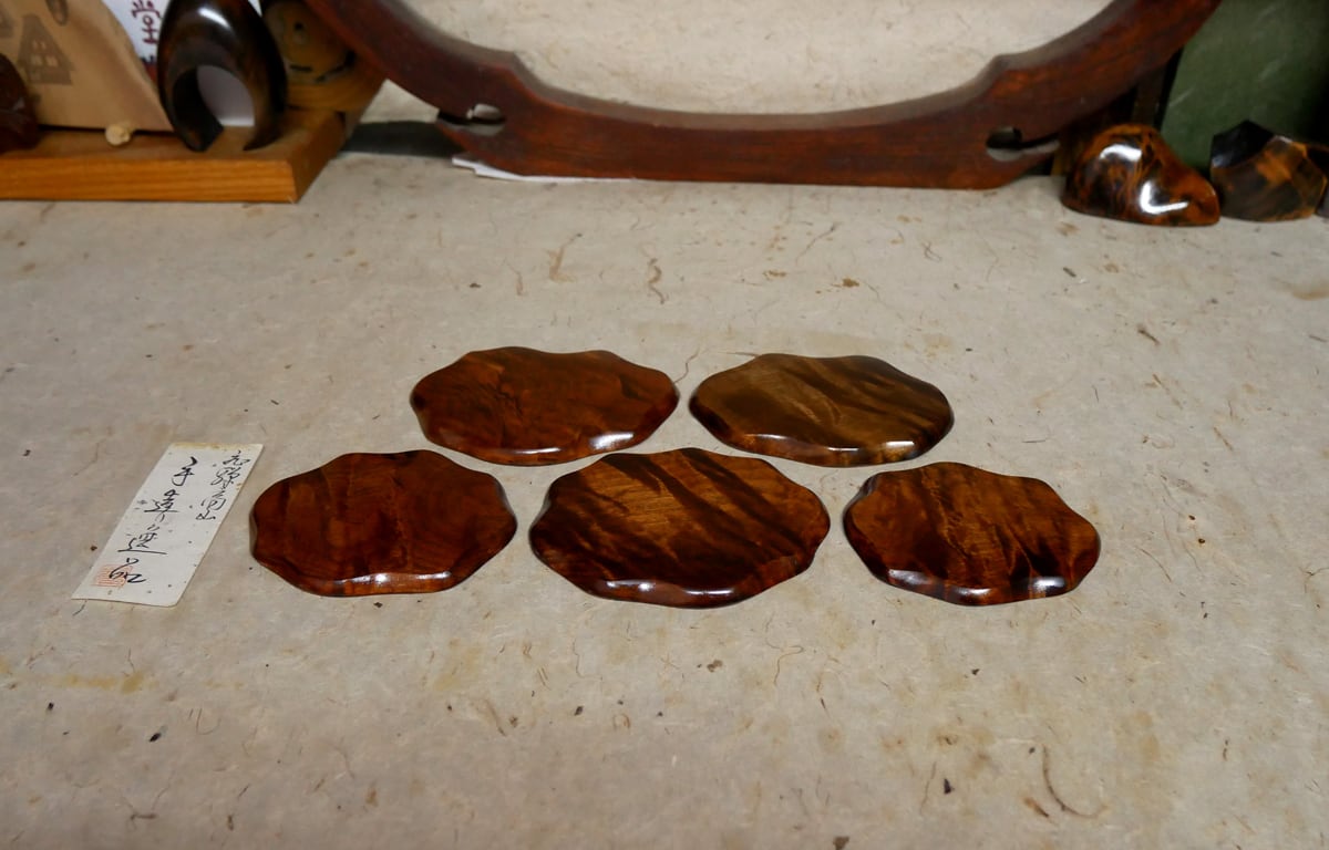 トチ杢の小花台 5枚セットでございます。