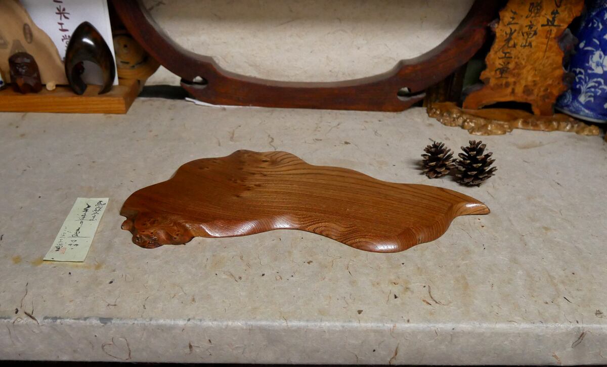楡(ニレ)の自然木敷板、ちょっと変形です。(^^;