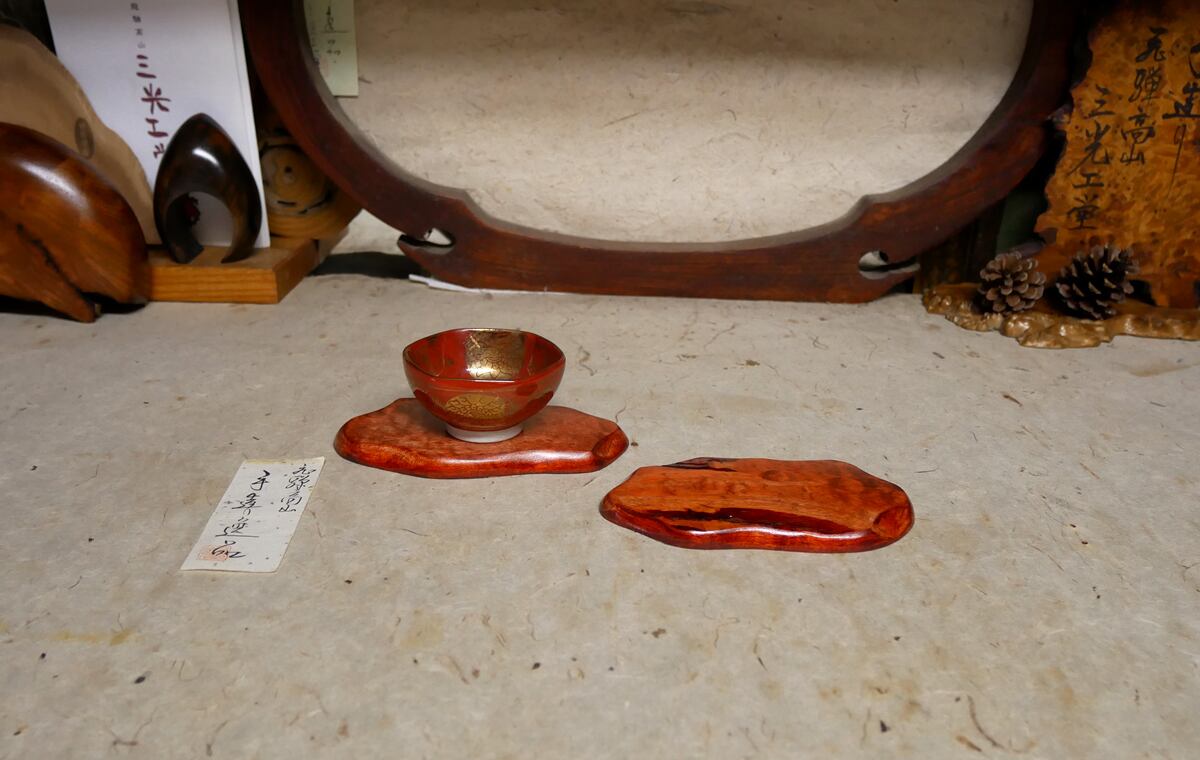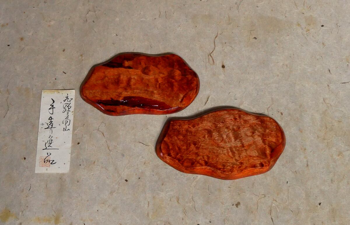 【飛騨の杢工房 謹製】栃自然木 ミニ敷板 2枚 朱色 (p476)