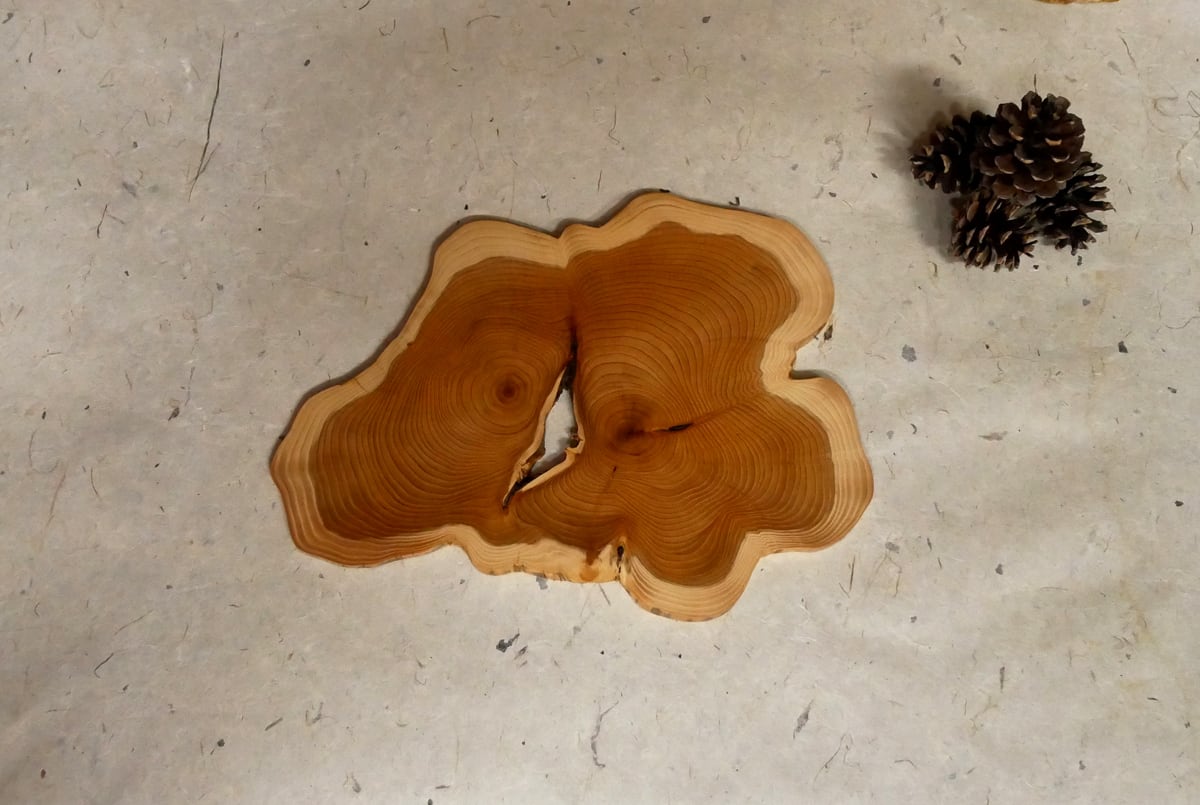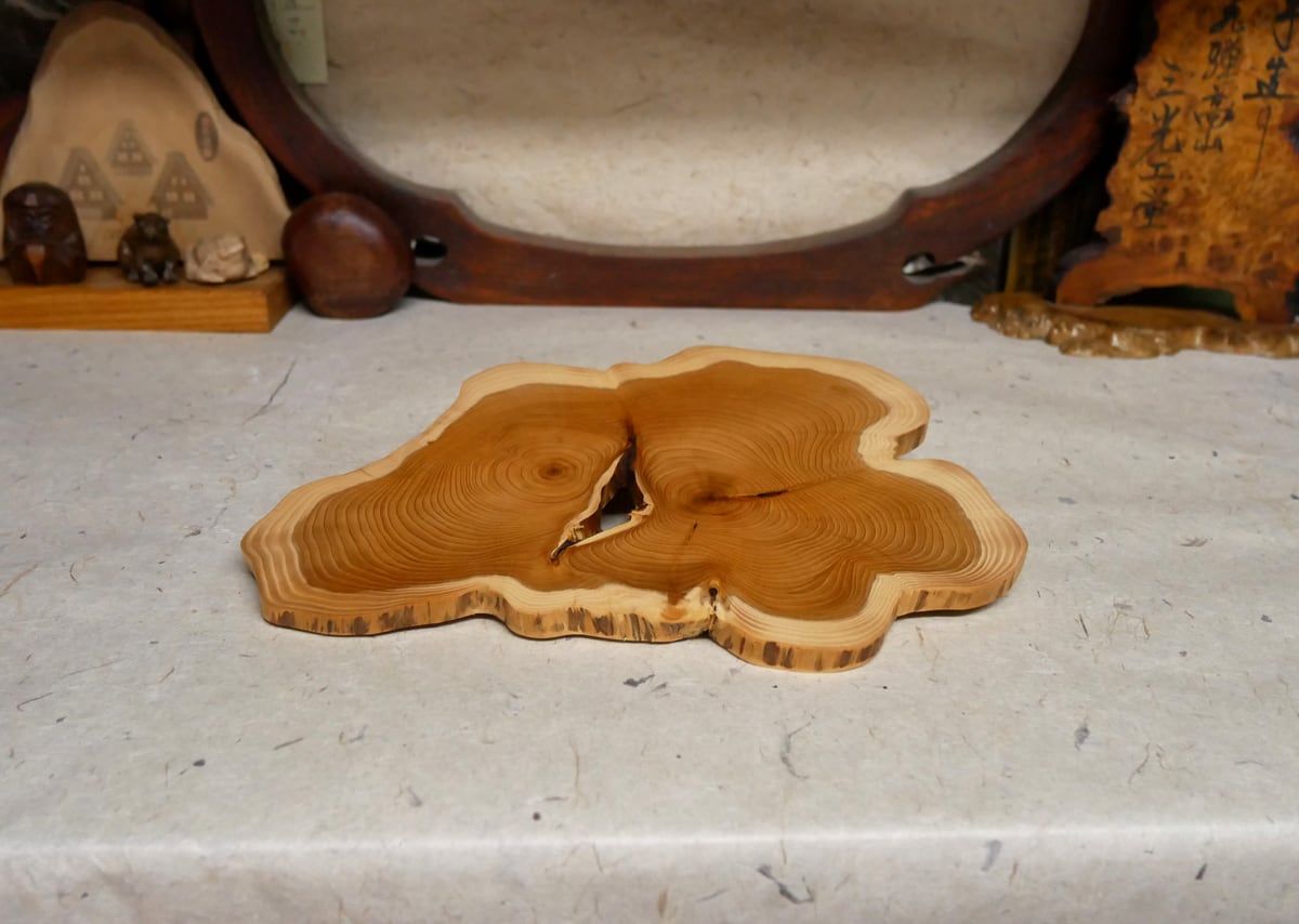 【飛騨の杢工房 謹製】イチイ自然木 輪切り 台座・飾り台 (p487)