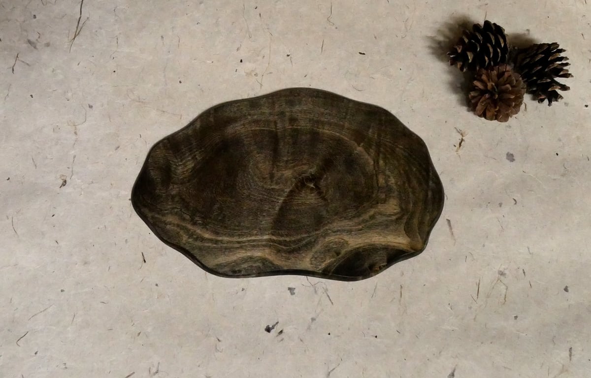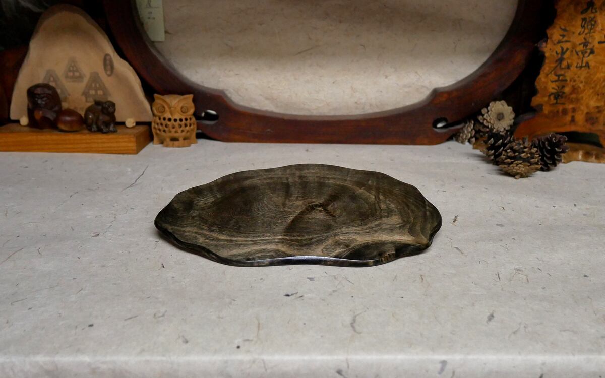 濃い色合いに染めた栃の自然木(その1)でございます。