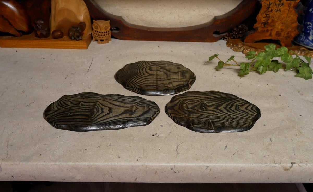 【飛騨の杢工房 謹製】タモ杢 敷板・花台 3枚 (p516)