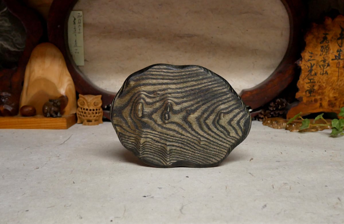 タモ杢、黒い色合いに仕上げました。