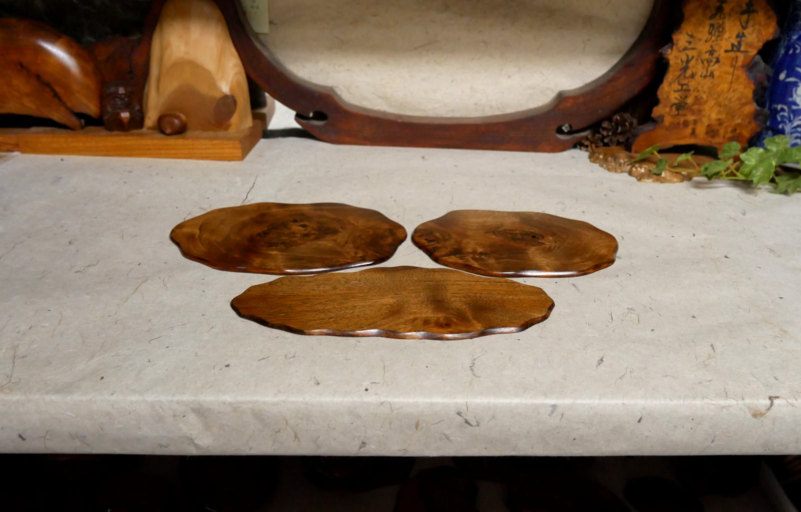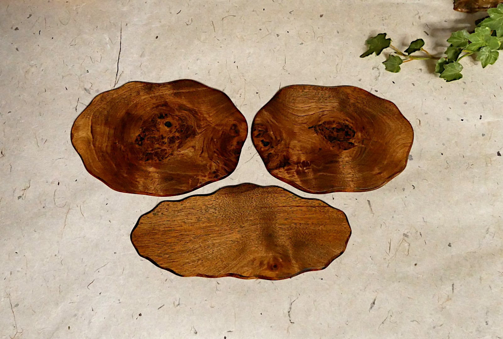 ダケカンバ天然こぶ(道産)の薄い敷板、3枚セットです。