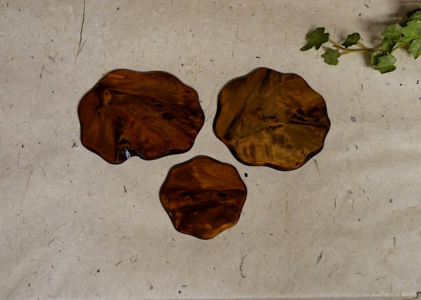 【飛騨の杢工房 謹製】ひのき自然木 ミニ敷板 3枚 (p538)