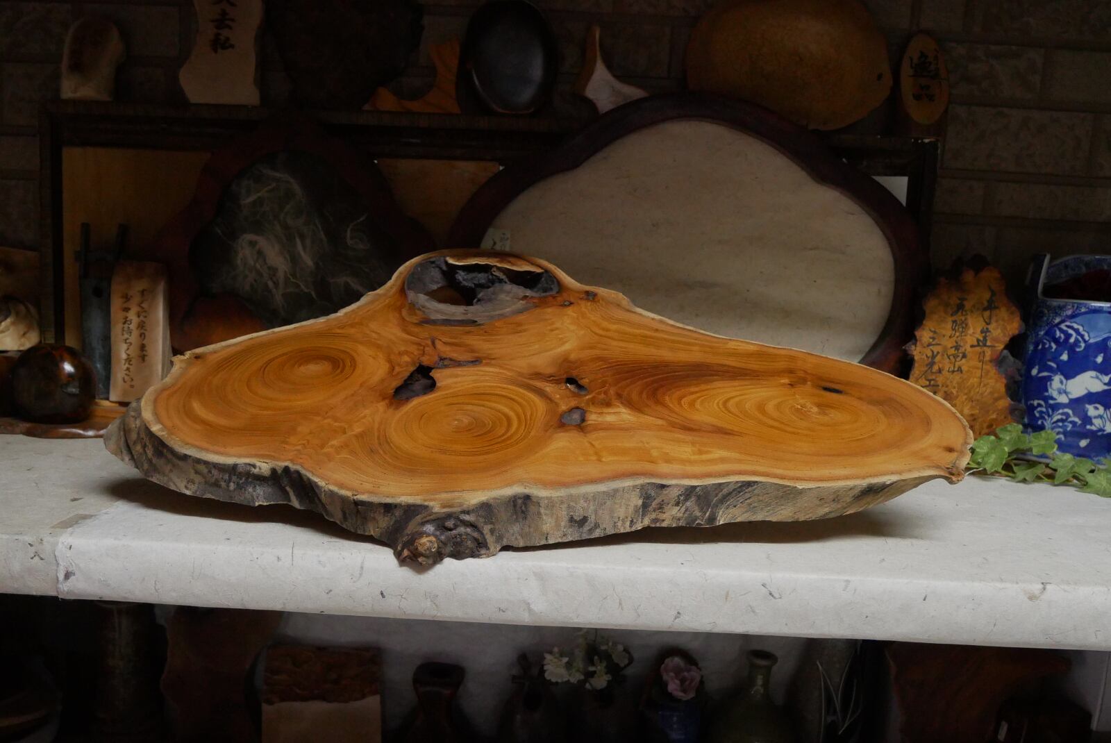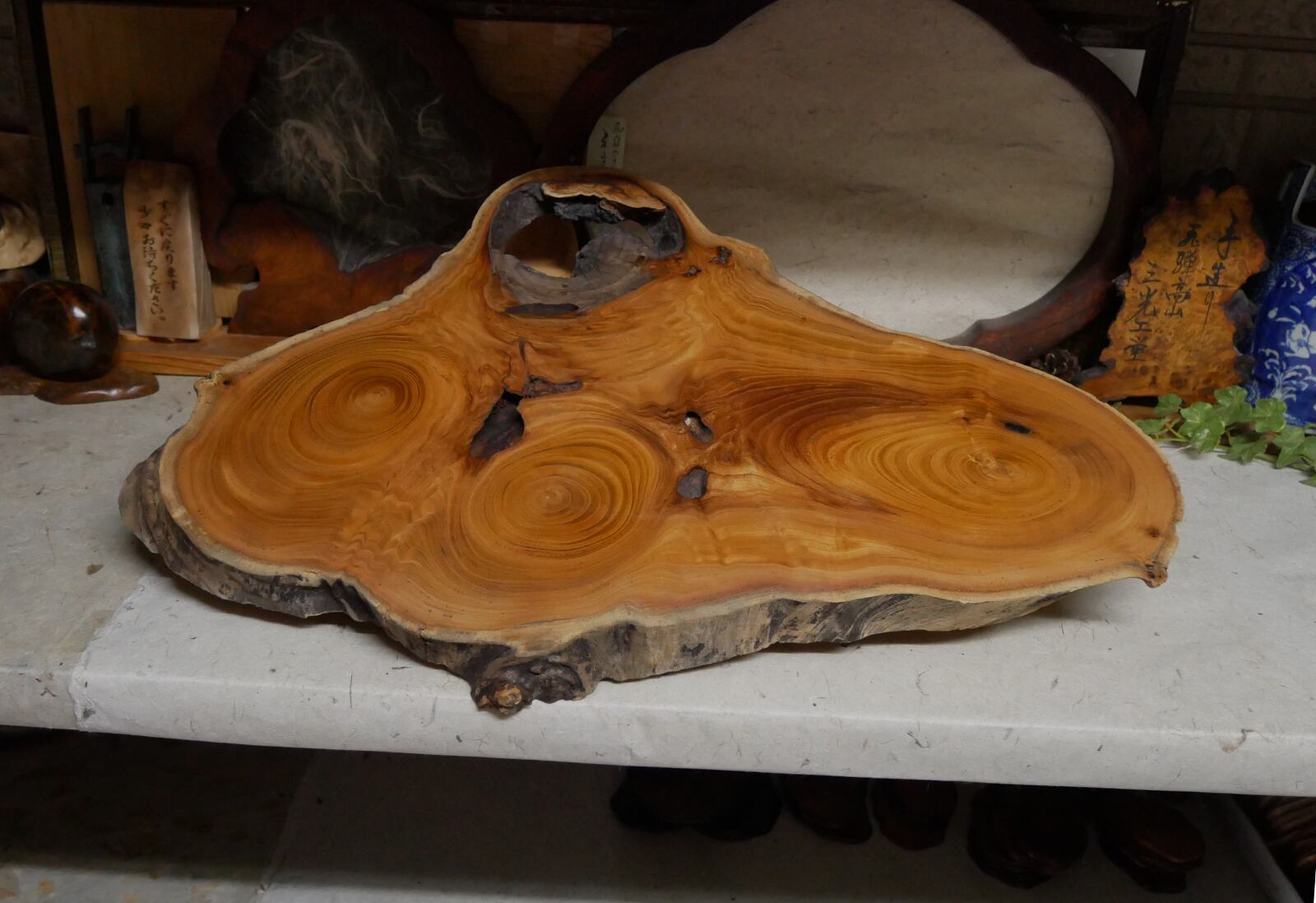 欅自然木の輪切り台座でございます。