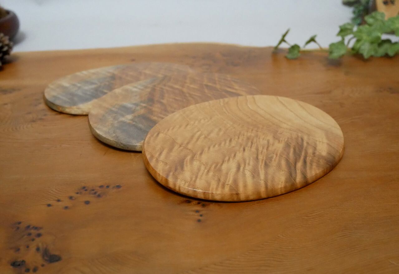 【手作り逸品】ケヤキ杢 敷板 小判型 3枚 (p183)